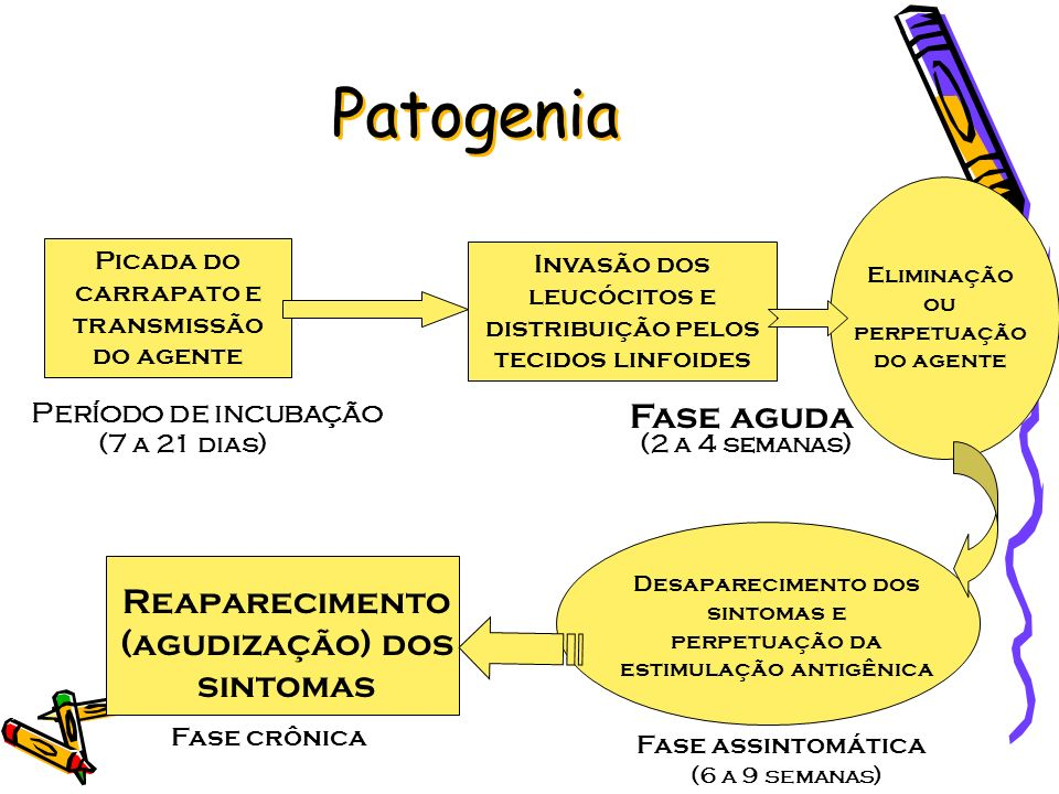1) inchaço de 8 dias com erupção cutânea , febre, cefaleia e mialgia 2) Mácula tardia, 3-4 dias depois pros braços, tronco, fígado, rim, coraçã