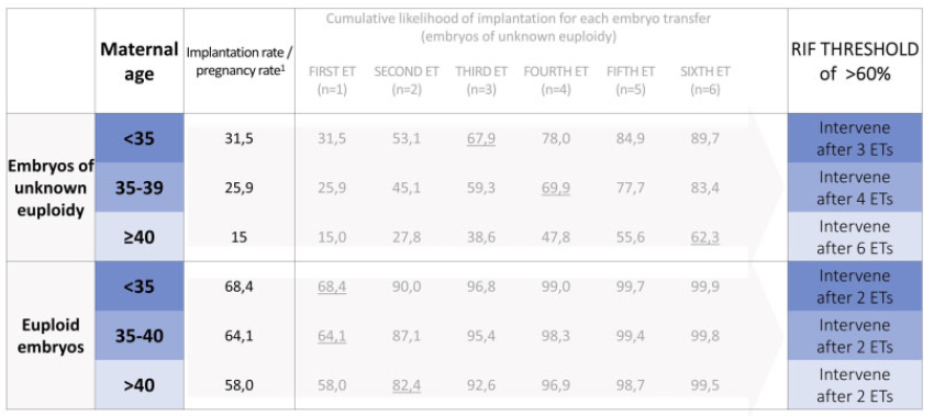 chance of implantation to identify RIF for the purposes of initiating