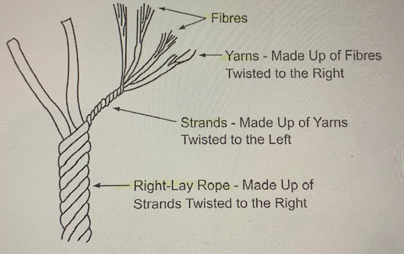 By reverse-twisting method. Fibres are right hand twisted into yarn, several yarns are left hand twisted into strands. Then three or four strands are right hand twisted to form a right lay rope.
