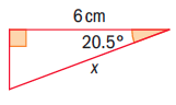 x (hypotenuse), 6 (adjacent), angle 20.5º