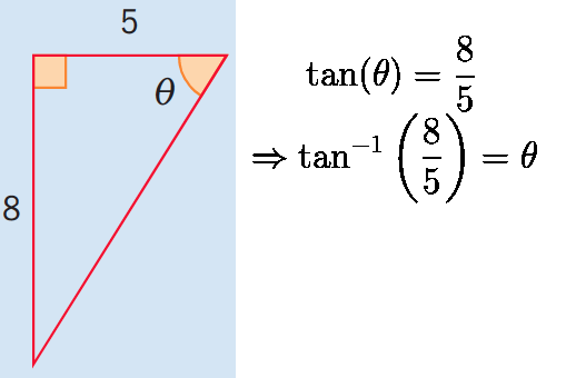 TOA: tan(“theta”) = opp/adj = 8/5