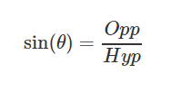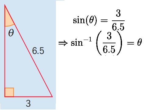 SOH: sin(theta) = opp/hyp = 3/6.5