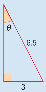 “theta” = sin-1(3/6.5) = 27.48 = 27.5º (3 s.f.)