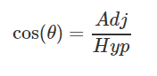 CAH - cos(angle) = adj/hyp