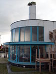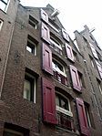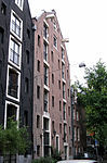 Pand met zeer smalle gevel, versierd met grote boogblokken