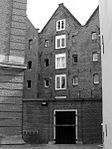 Pakhuis met puntgevels aan voor- en achterzijde de eerste met twee wapens