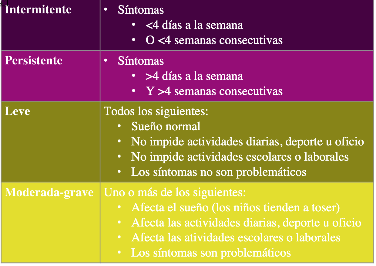 Rinitis: tos en primeras horas de la noche (antes de dormir y al despertar); Asma: tos a media noche (2–4 am).