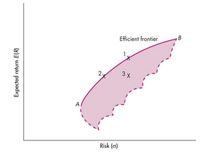 somewhere on the efficient frontier, but each investor may prefer a different point (risk adverse c.f. risk taking)