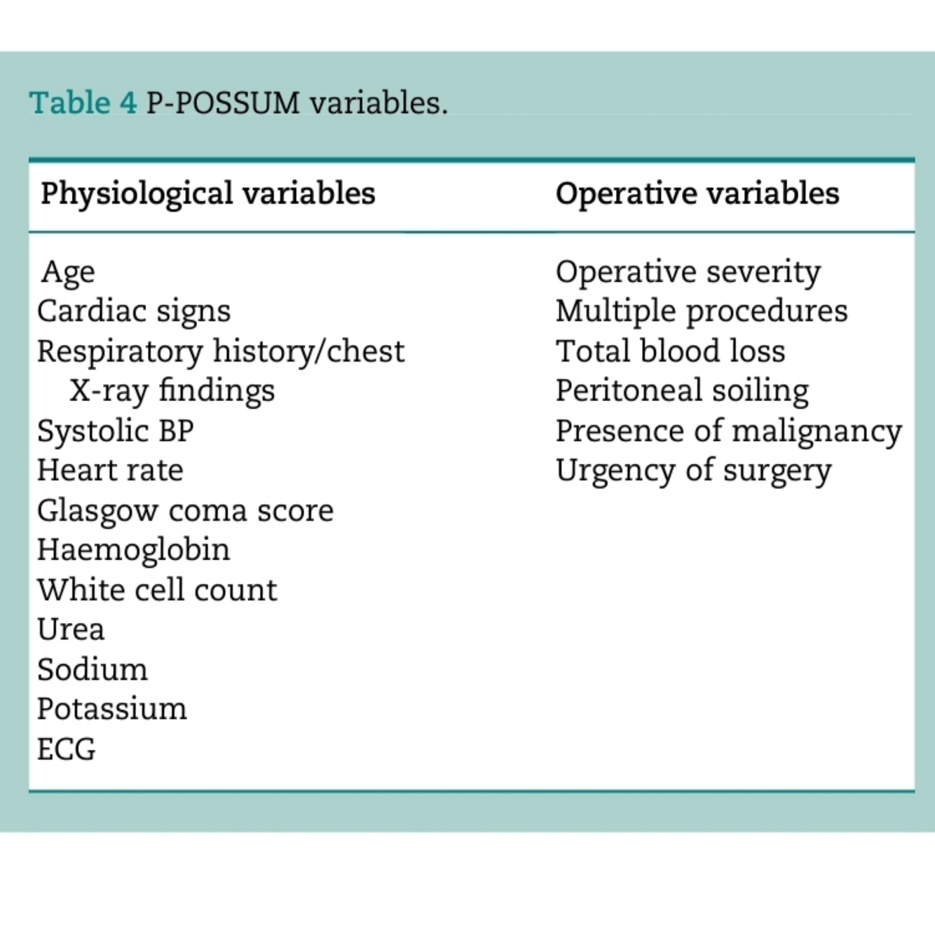 Itrequiresmuchthesamedatatobeinputtedas perP-POSSUM,andhasthesamedisadvantagesditistime consuming,requiresestimatesofintraoperativefindings,and hasnomorbiditycomponent.