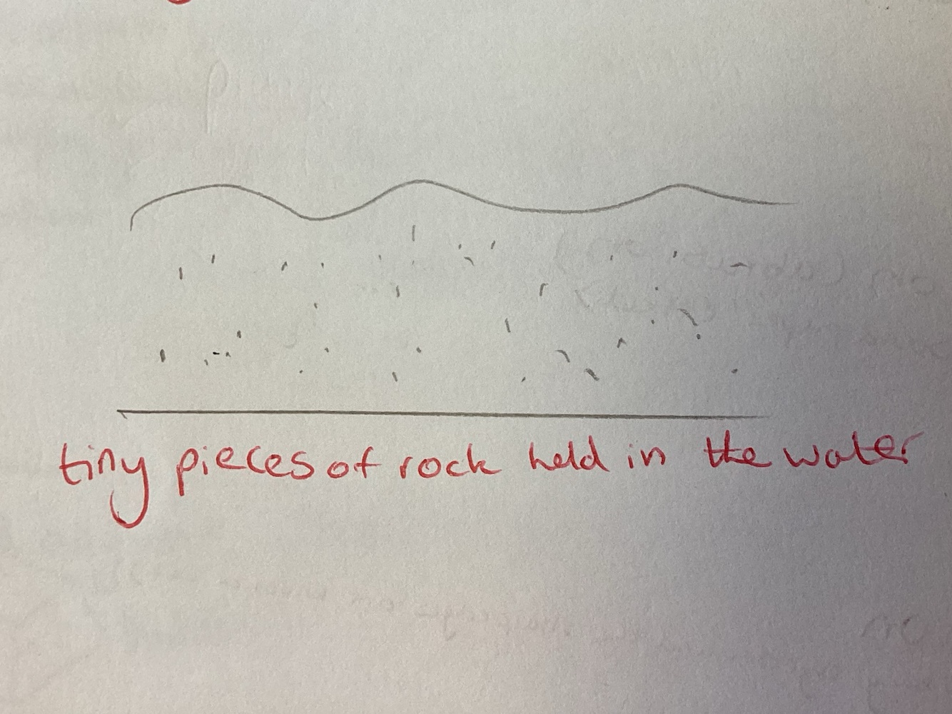 Tiny pieces of rock held in the water.