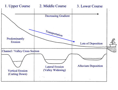 A line drawn from the source to the mouth of a river to show how gradient changes through its course.