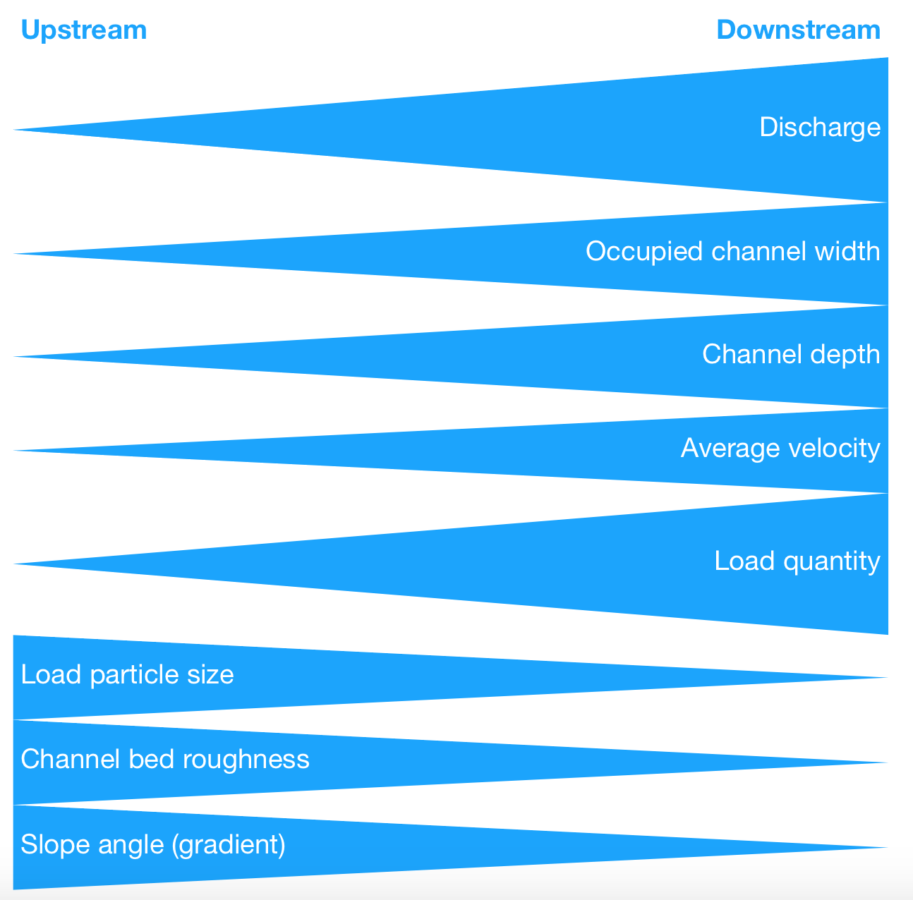 how a river’s characteristics vary between the upper course and lower course of a river.