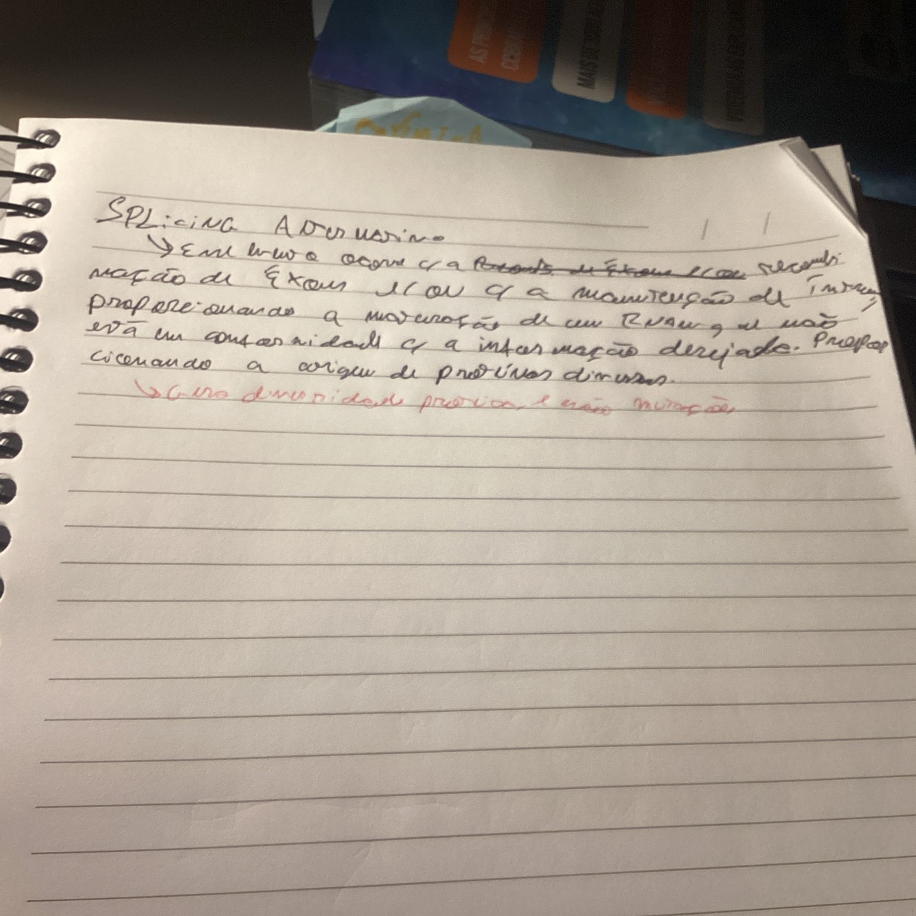 Explique como o ocorre o splicing. Aproveite e explique a partir daquele exemplo de receita de bolo