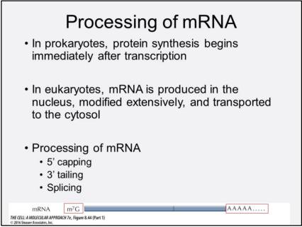 What are 3 processing steps of mRNA and where does processing take place?