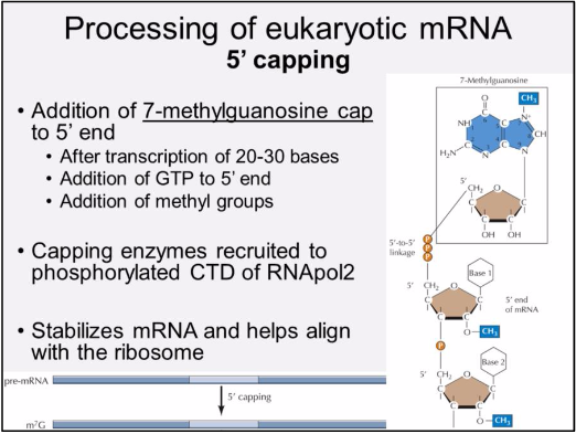 Describe 5’ capping of mRNA.