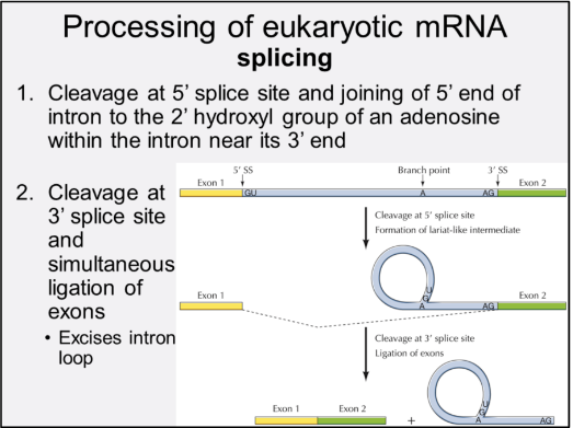 What is the first step of mRNA splicing?