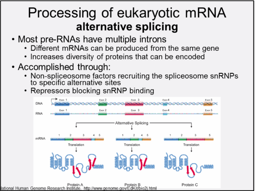 It is estimated that nearly all human genes produce multiple transcripts through alternative splicing, with up to several thousand mRNAs arising rom some genes.