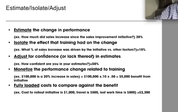Monetize the total estimated change, then apply Isolation and Adjustment → Net Benefit; subtract costs for ROI.