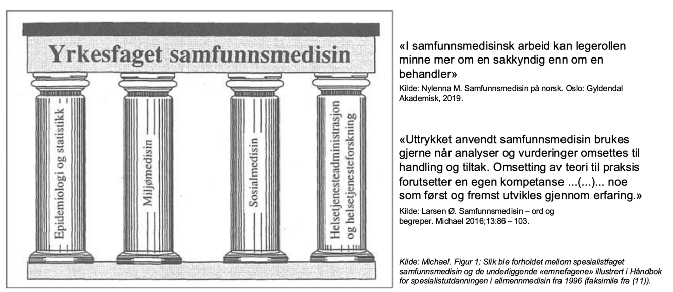 Hvilke fire søyler består yrkesfaget samfunnsmedisin av?