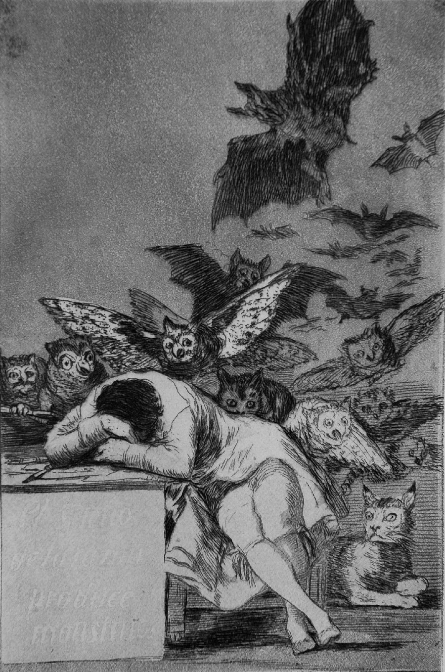 Allegorical representation for reason - when reason goes to sleep, scary things happen