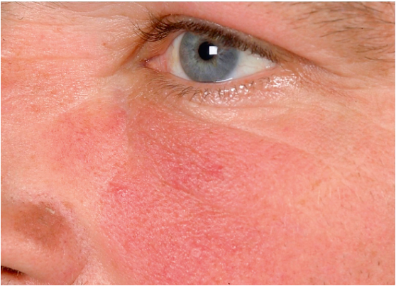 some patients will have some degree of persistent erythema of the cheeks that may represent a combination of postinflammatory erythema, telangiectasias, and vasodilation.