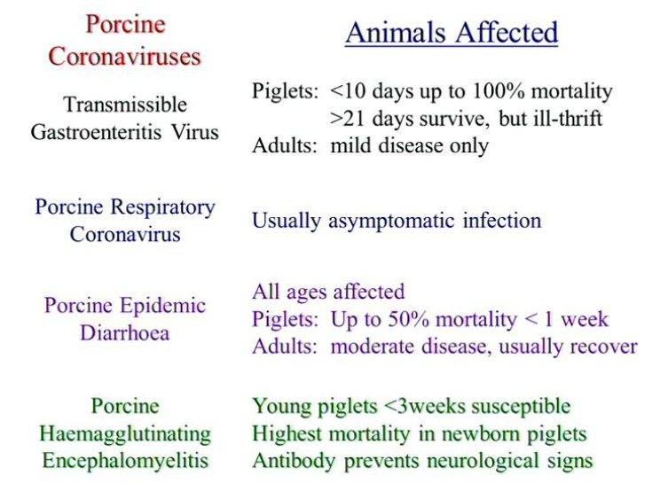 Porcine Coronaviruses animals affected