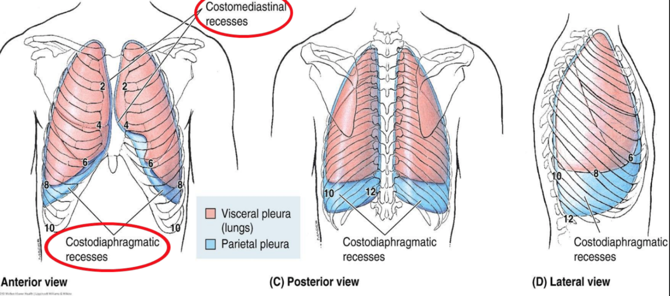 what is the name for the inferior part of both pleural cavities that allows for lung expansion during deep breathing?