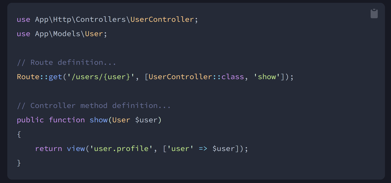 이 때, 라라벨에서 라우터에 모델을 Injecting ( 주입 ) 해주는 기능은?