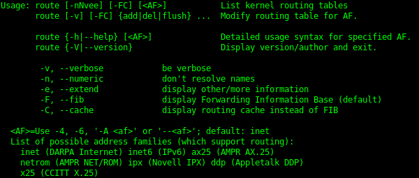 Route manipulates the kernel’s IP routing tables. Its primary use is to set up static routes to specific hosts or networks via an interface after it has been configured with the ifconfig(8) program.