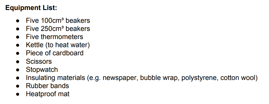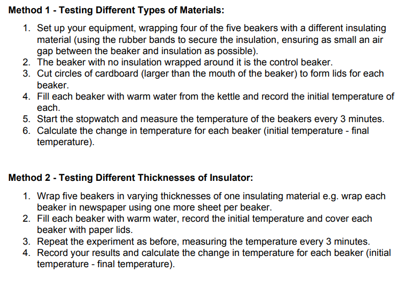 RP2: testing the effectiveness of different materials (and different thicknesses) as thermal insulators