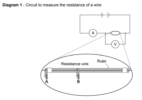 set up this circuit - attach a length of wire along a metre rule using pieces of tape - attach a crocodile clip at 0cm on the ruler
