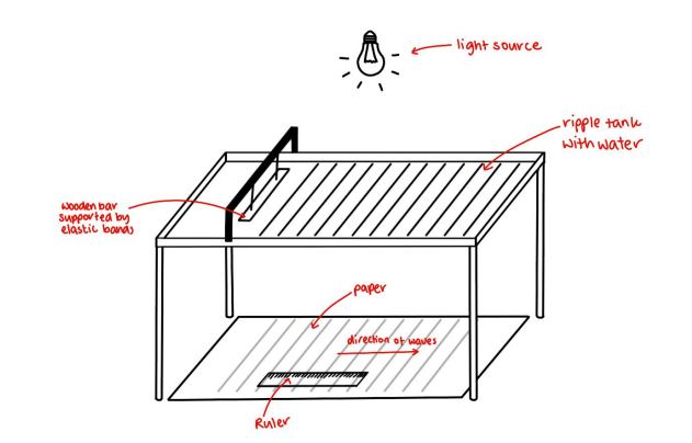 To measure the frequency, count the number of waves passing a particular point in the wave tank over a given time (measure 10 or 20 seconds using a stop clock).