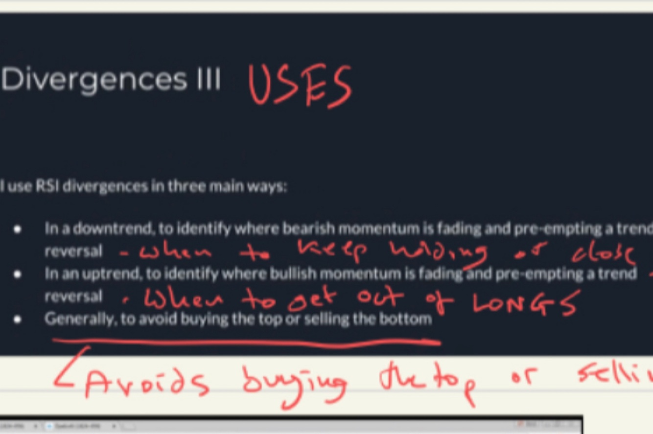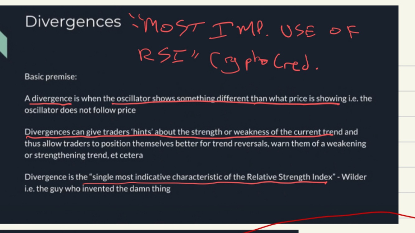 Divergence, when RSI is doing something different from price - allows us to set up for a correction / reversion