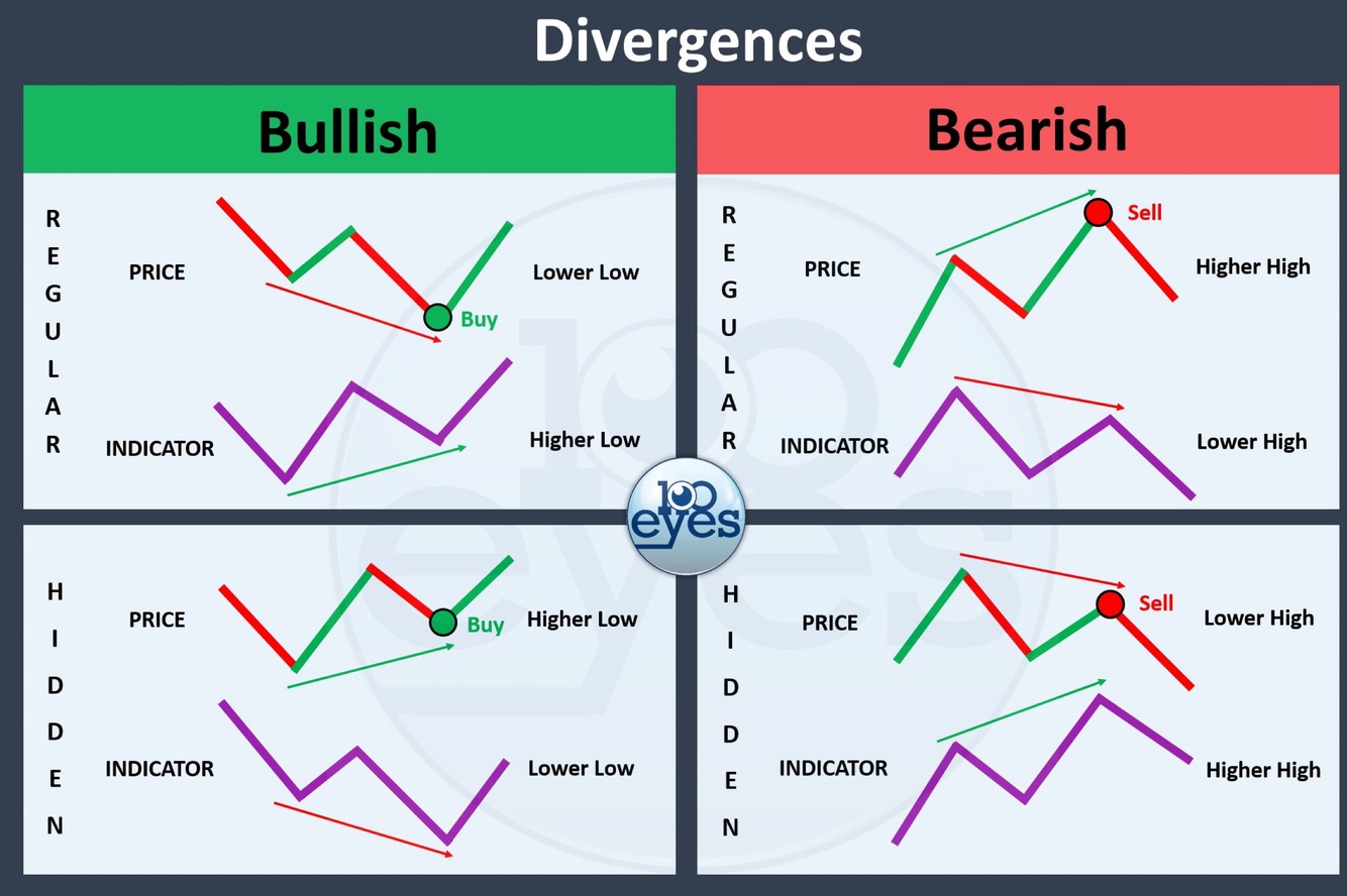 Hidden divergence is similar to regular divergence, but the divergences between the price and the RSI are not as obvious. This can occur when the price is making a series of small highs or lows, while the RSI is making a larger high or low. Hidden divergence can be a subtle signal of a potential trend reversal.