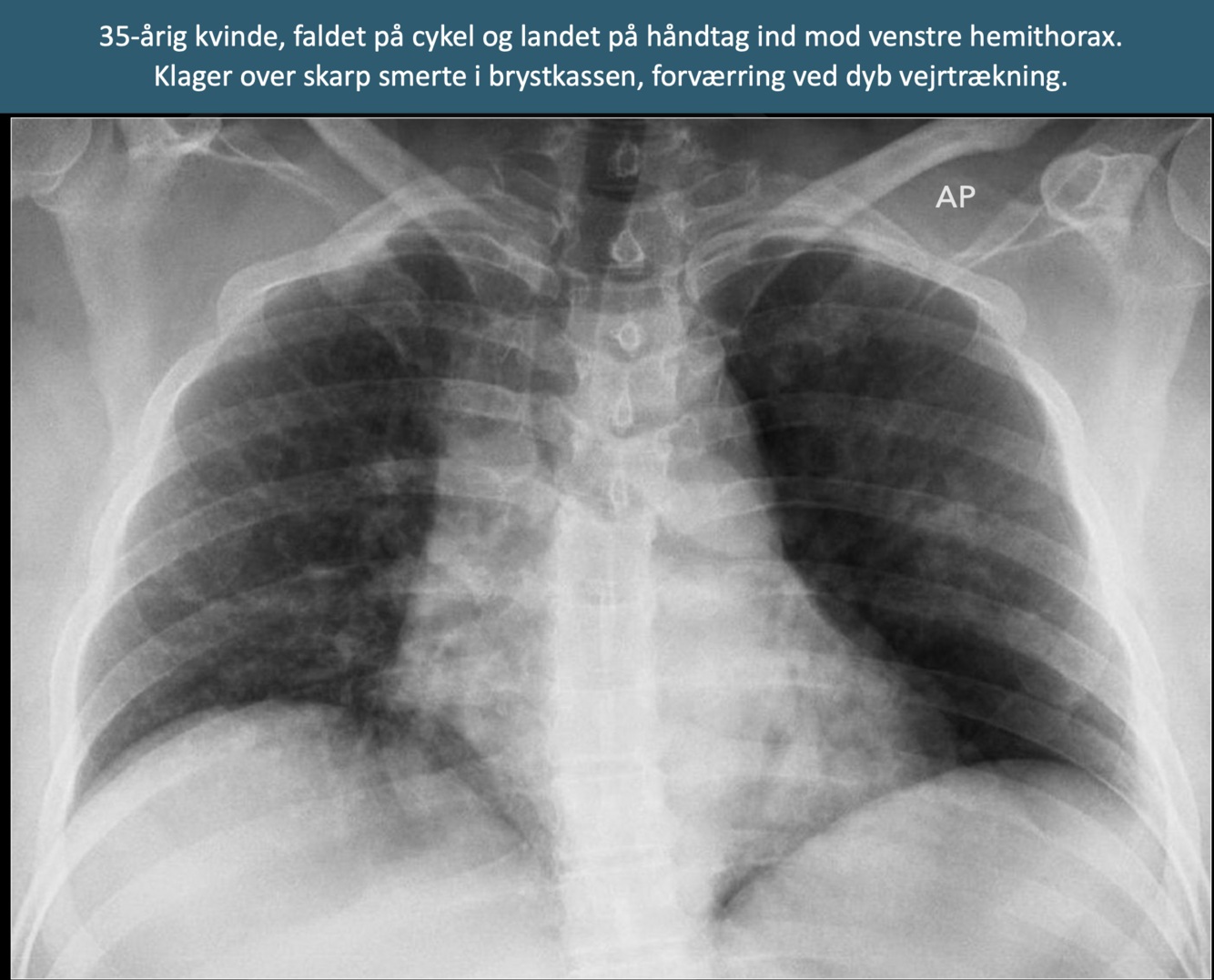 - Normalt: 8-10 ribben skal som regel ses (ved inspiration)