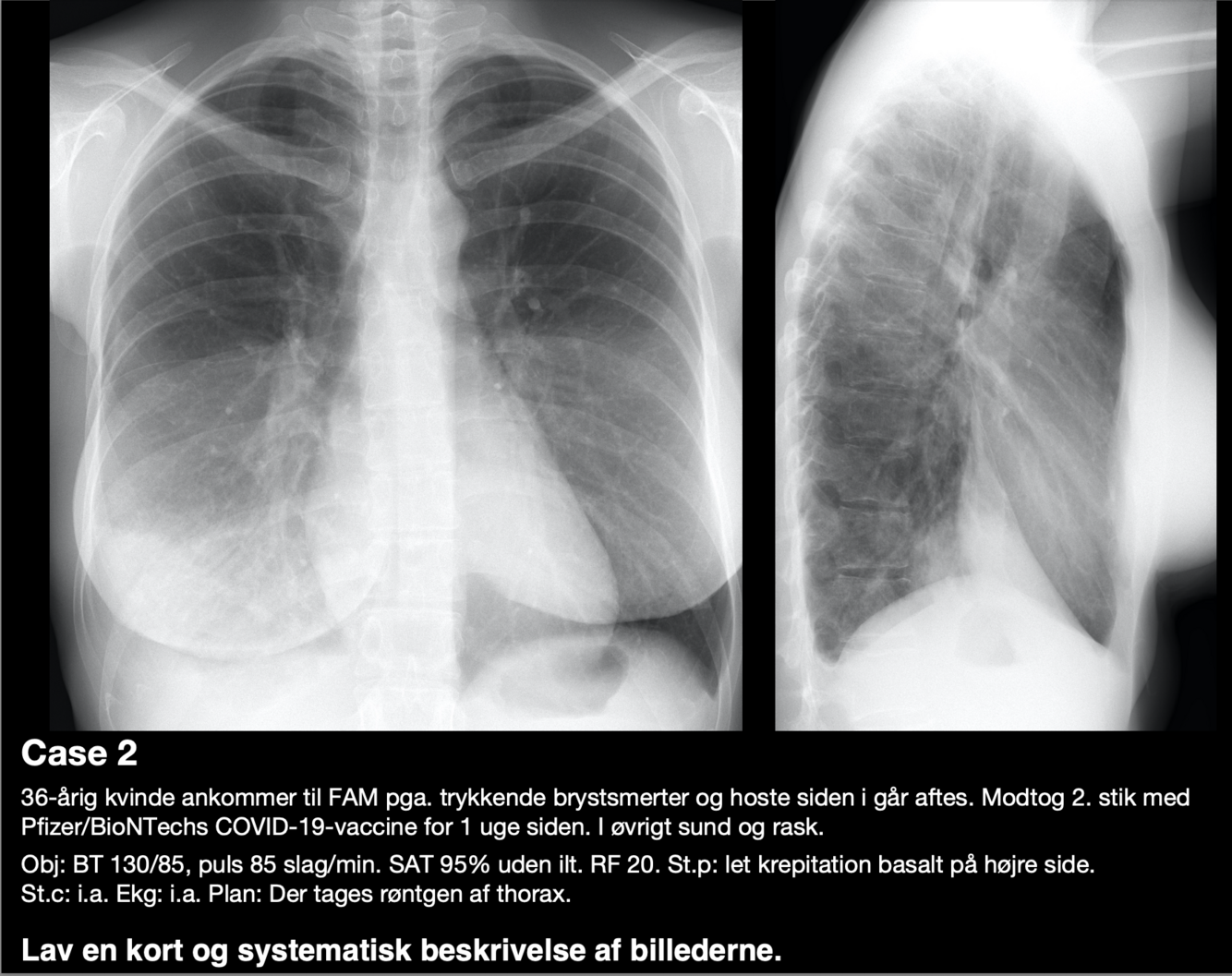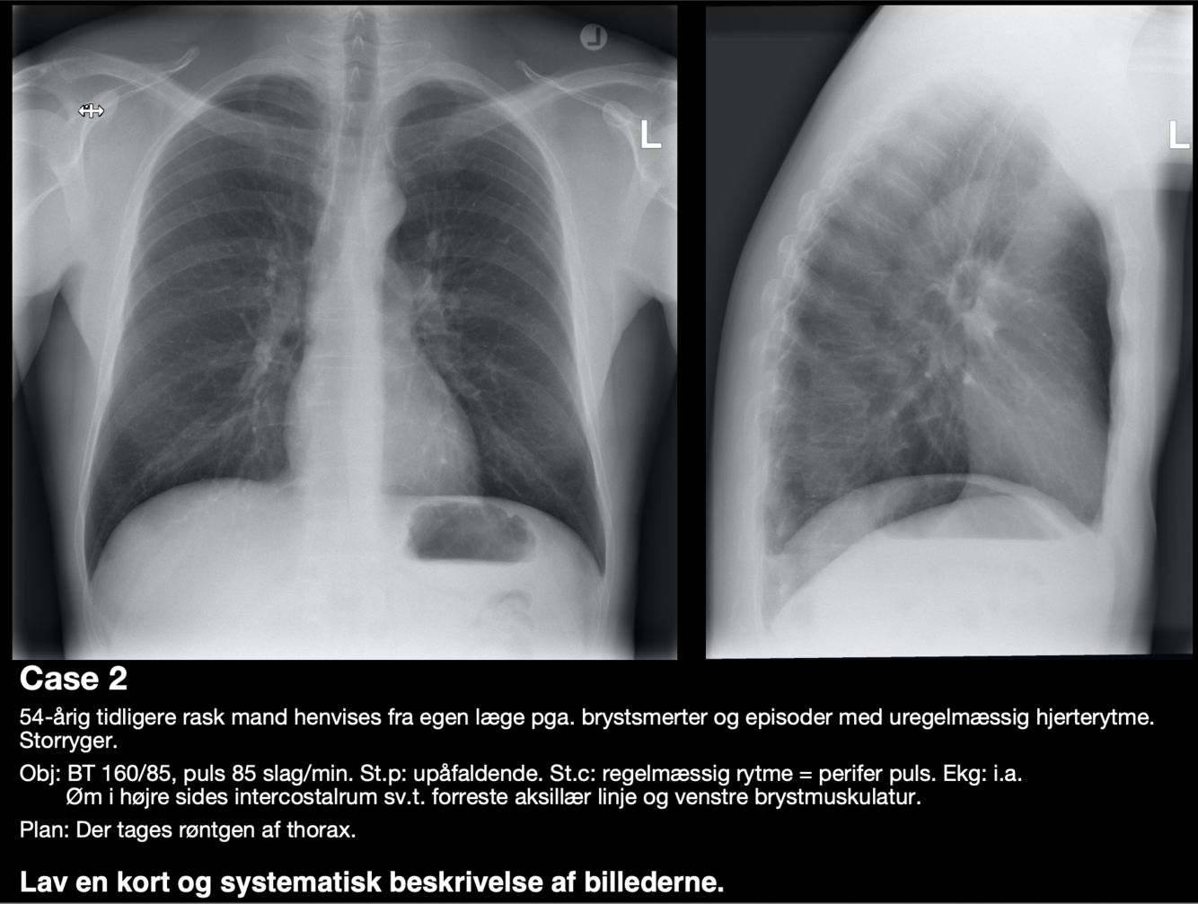 2) Beskriv modaliteten: rtg. thorax, stående/liggende, planer