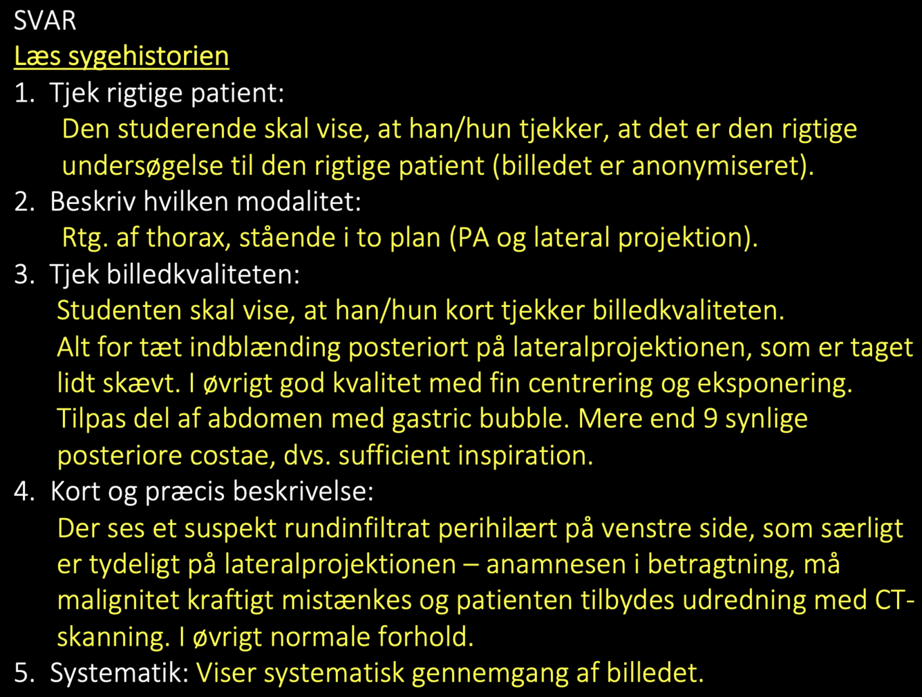 Inspiration: pt. skal holde vejret når rtg. thorax tages – skal ses gerne minimum 9 costae (ribben)