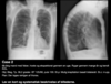 - Det klassiske billede er en kileformet homogen skygge med spidsen mod hilus – (”unormale linjer”)