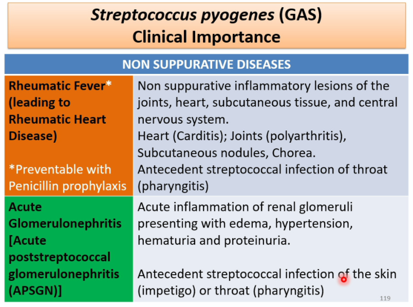 name the 2 non-suppurative diseases that Streptococcus pyogenes (GAS) causes