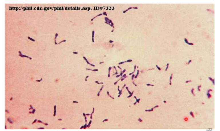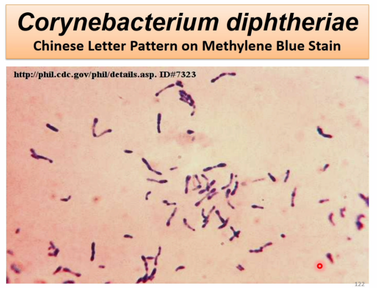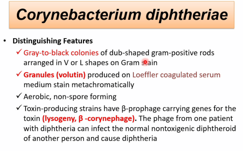 Corynebacterium diphtheriae produces gray-to-black colonies of dub-shaped G+ve rods arranged in V or L shapes on Gram stain