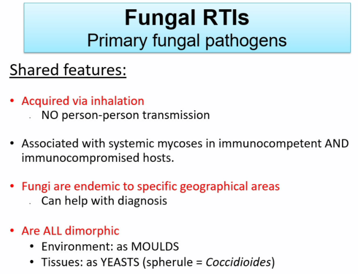 all primary fungal RTIs are acquired via inhalation and all are dimorphic
