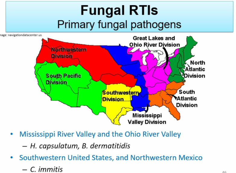 H. capsulatum & B. dermatitidis are endemic in the area of the Mississippi River Valley and the Ohio River Valley