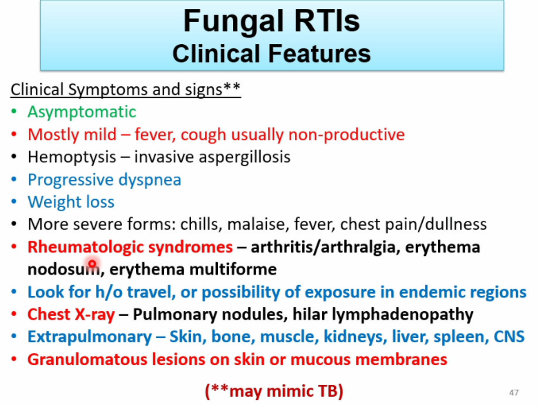 list the clinical features of fungal RTIs