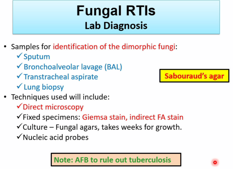 describe obtaining samples and techniques used for diagnosing fungal RTIs