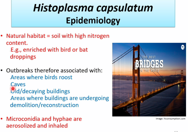 the natural habitat of Histoplasma capsulatum is soil with high nitrogen content, such as that enriched with bird or bat droppings