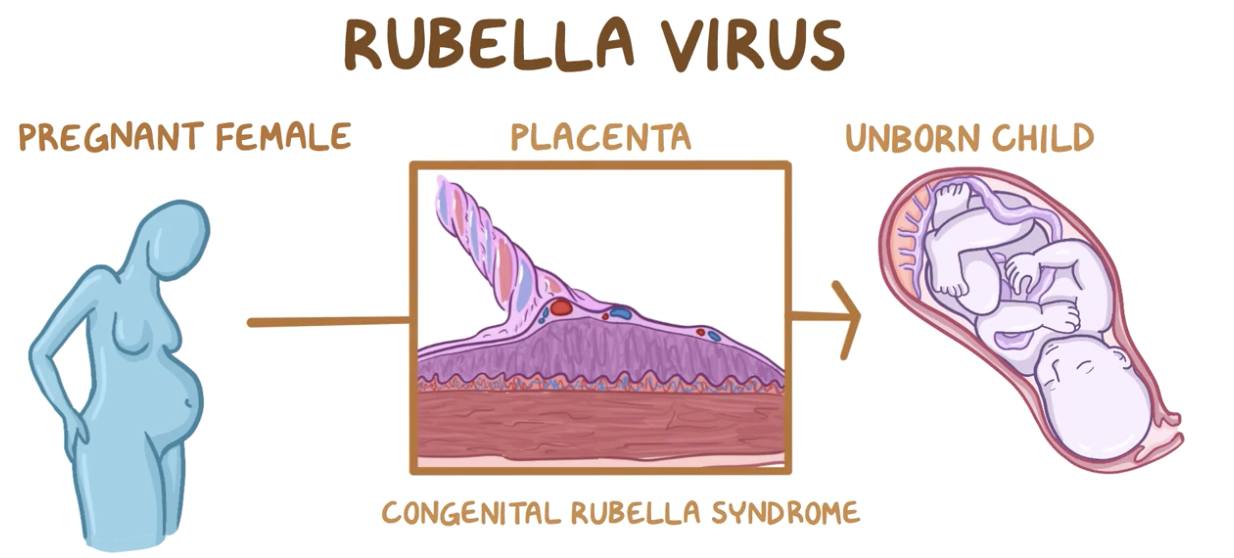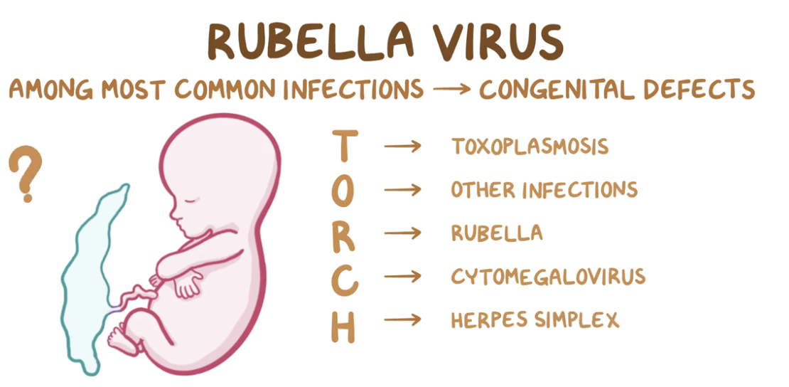 Can cause congenital rubella syndrome and can lead to miscarriages, stillbirths, and a constellation of severe birth defects in infants can result.