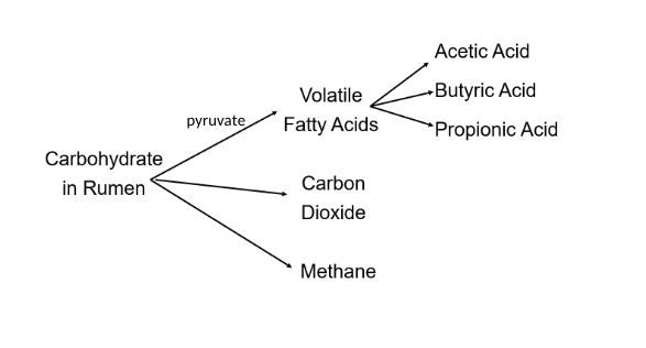 Describe the chain of carbohydrate digestion in ruminants