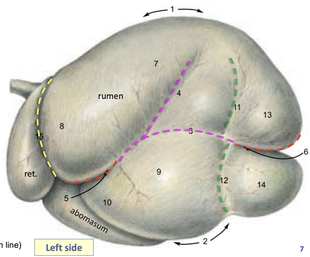15 Ruminoreticular groove (yellow broken line)
