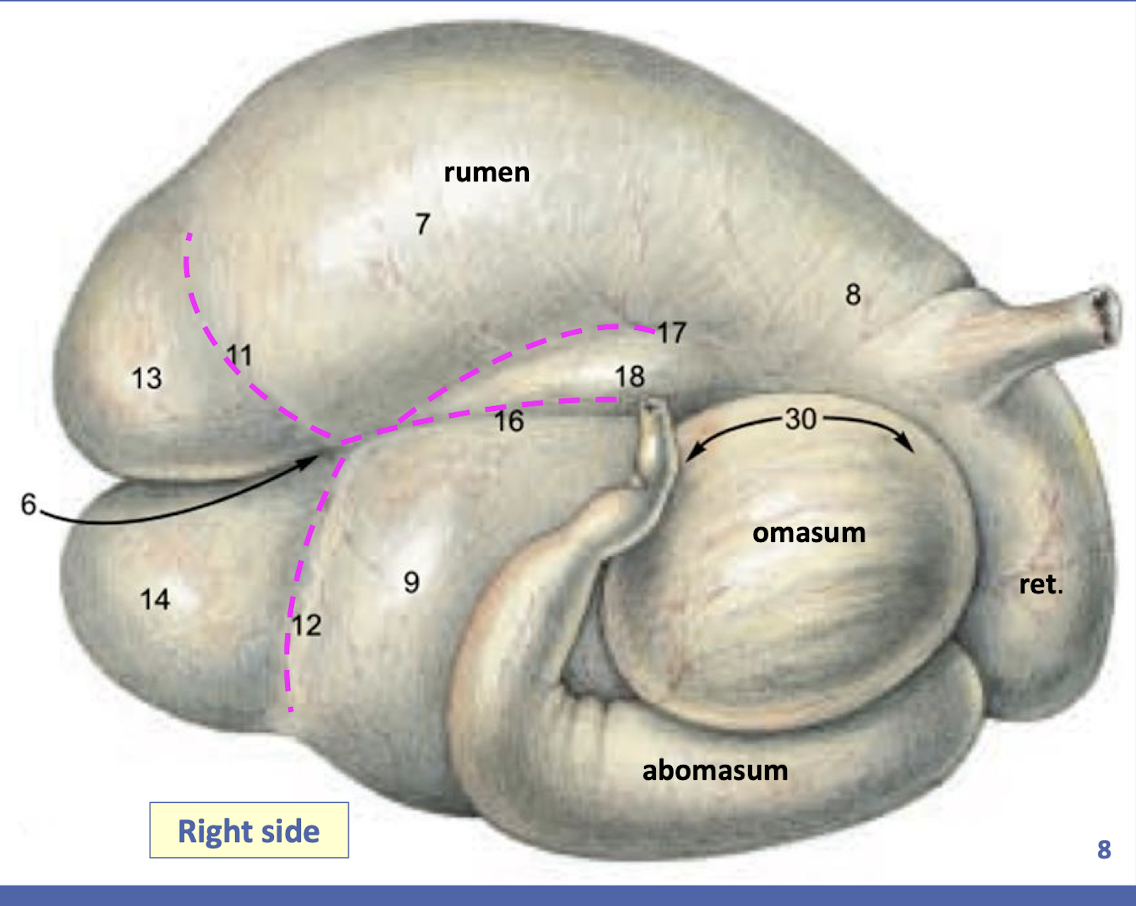 3- Reticulo-omasal opening (in lower Rt. wall of reticulum)