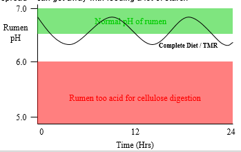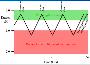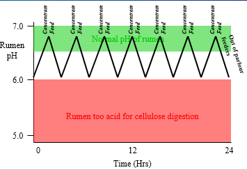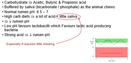 Fall in rumen pH - ruminal acidosis s